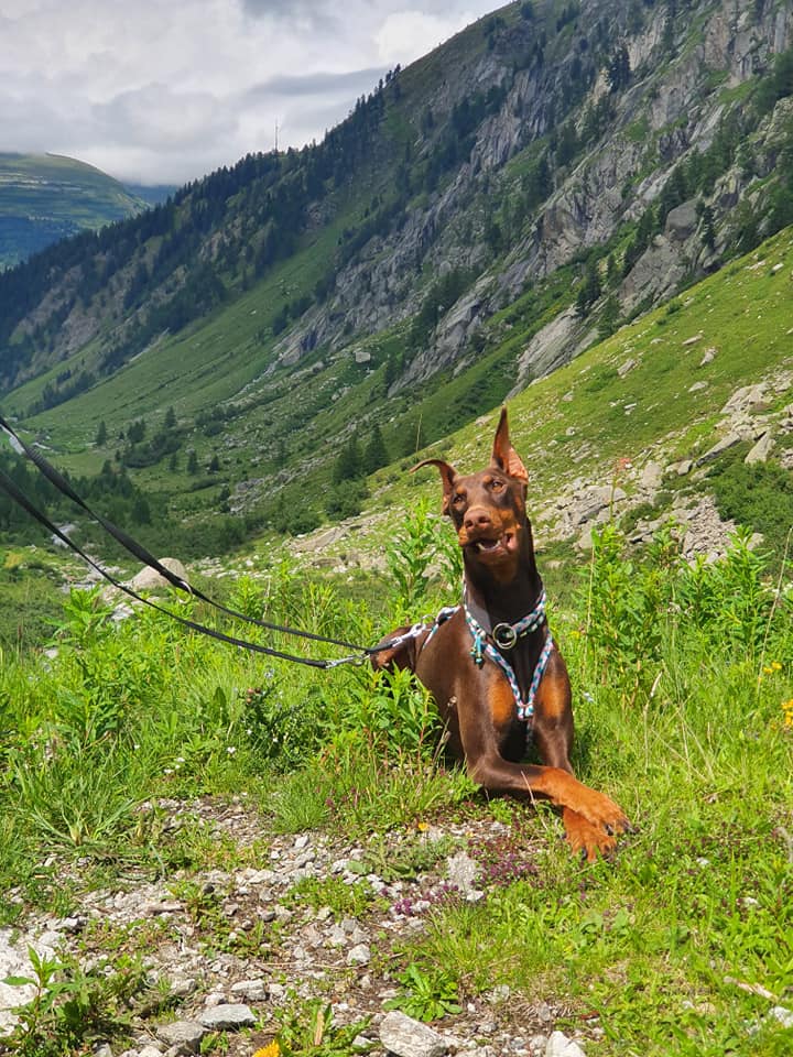 She was abused, and her ears and tail were illegally cropped. Therefore, she was confiscated, and we went to pick her up. She required a lot of care and patience to regain her trust, and we learned a lot caring for her. Now she lives with a loving family.