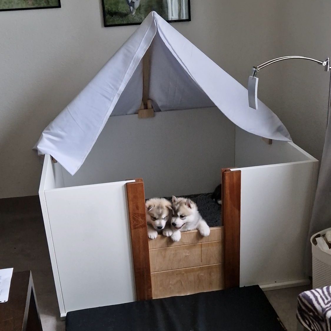 Our puppies are born in our bedroom, where we can monitor them closely and ensure both mother and puppies receive our full attention. This quiet, peaceful environment allows the mother to feel completely relaxed and secure, which is essential during the first few weeks of life. By having them right beside us, we are able to provide round-the-clock care and ensure both mother and puppies are safe, comfortable, and thriving. This setup allows us to respond immediately to their needs, day or night, and gives us the joy of watching their very first moments of growth. The puppies spend their earliest days surrounded by warmth, gentle care, and familiar voices.